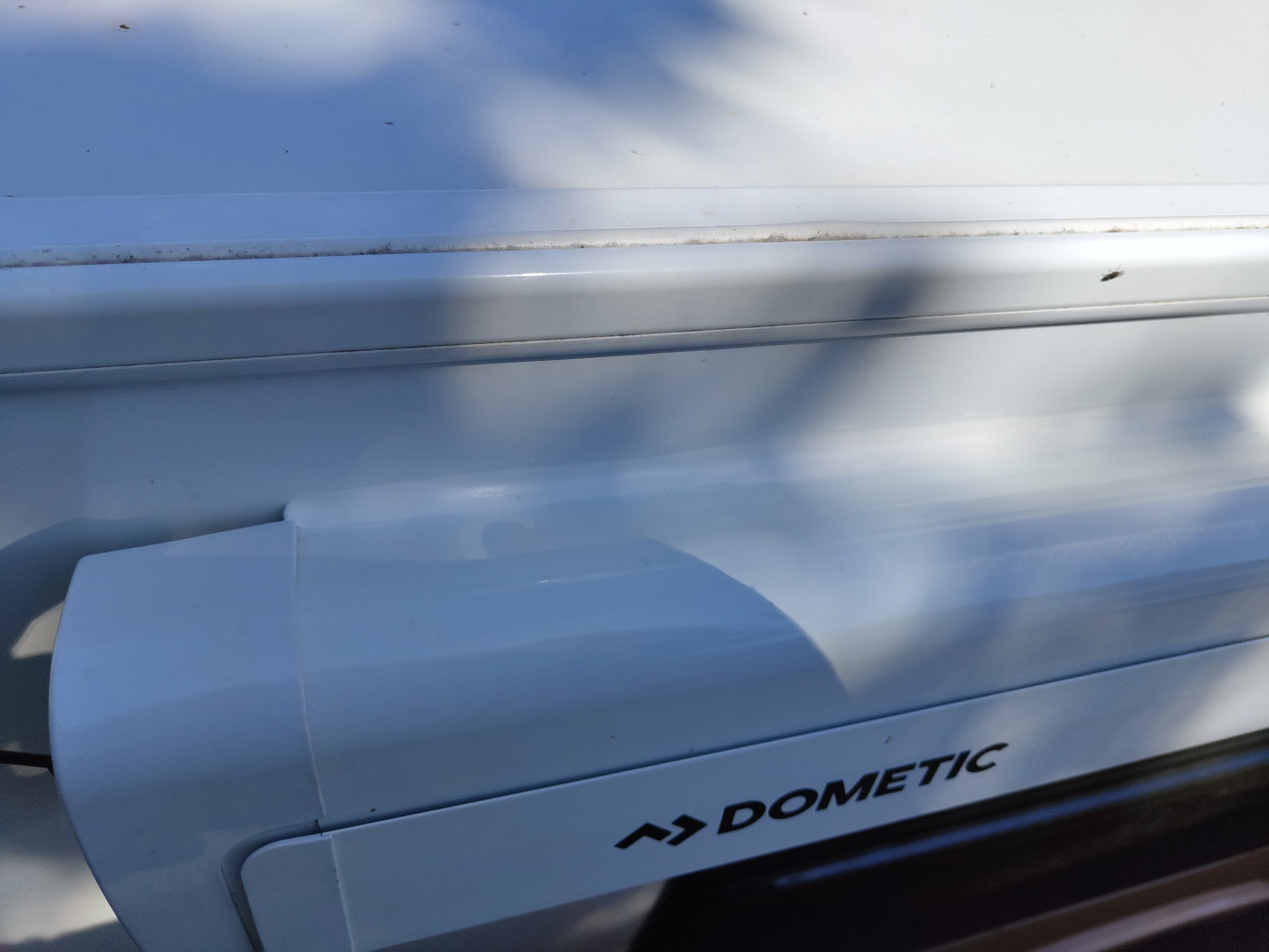 Und zuletzt habe ich noch die Markise zur Wand hin abgedichtet. Der "Fachbetrieb" Palmowski mach das ja wohl nicht serienmäßig.