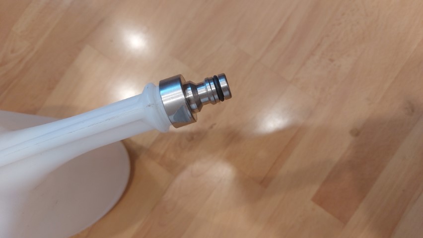 Es gibt zwar im Internet den Beitrag von jemandem, der das ähnlich mit einer normalen Gießkanne gemacht hat, wobei ich nicht weiß wie er den Schlauchanschluss an der Gießkanne befestigt hat und ich sowieso lieber die verschließbare Gießkanne bevorzuge. Die Information mit den passenden Gewinden wird für den einen oder anderen vielleicht nützlich sein.
