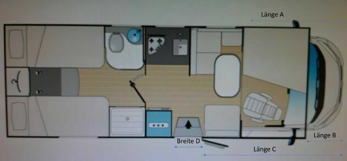 Länge B= Ende Alkoven Dach bis Stoßstange