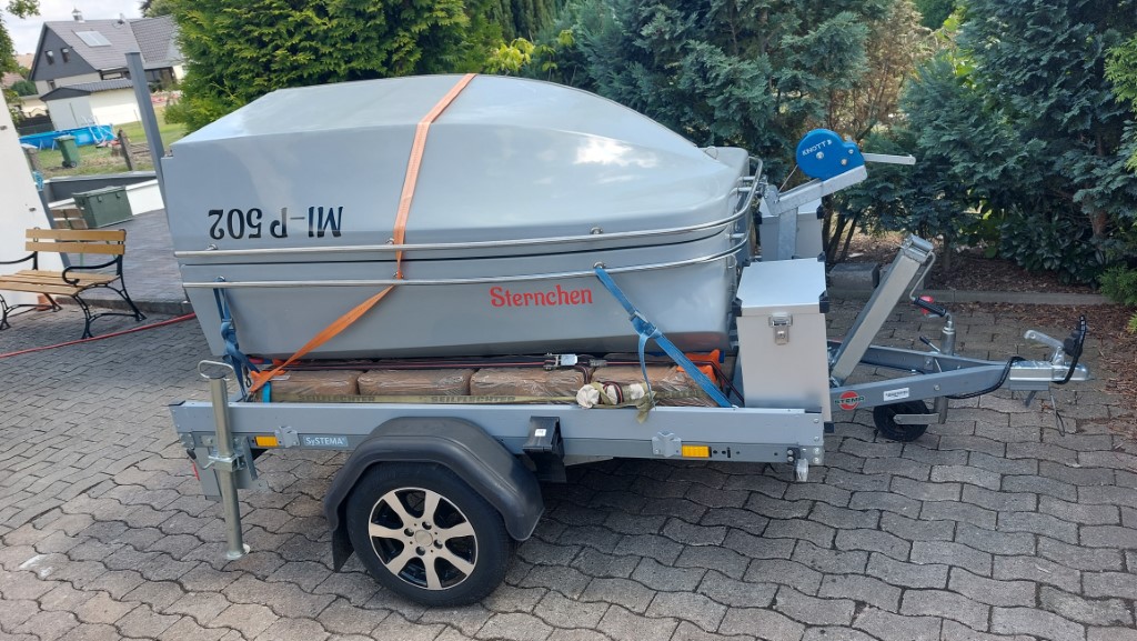 Gestern haben wir das Boot fertig gepackt. Auch die 8 Paletten Dosenbier (4 auf jeder Seite) sind bereits verstaut.