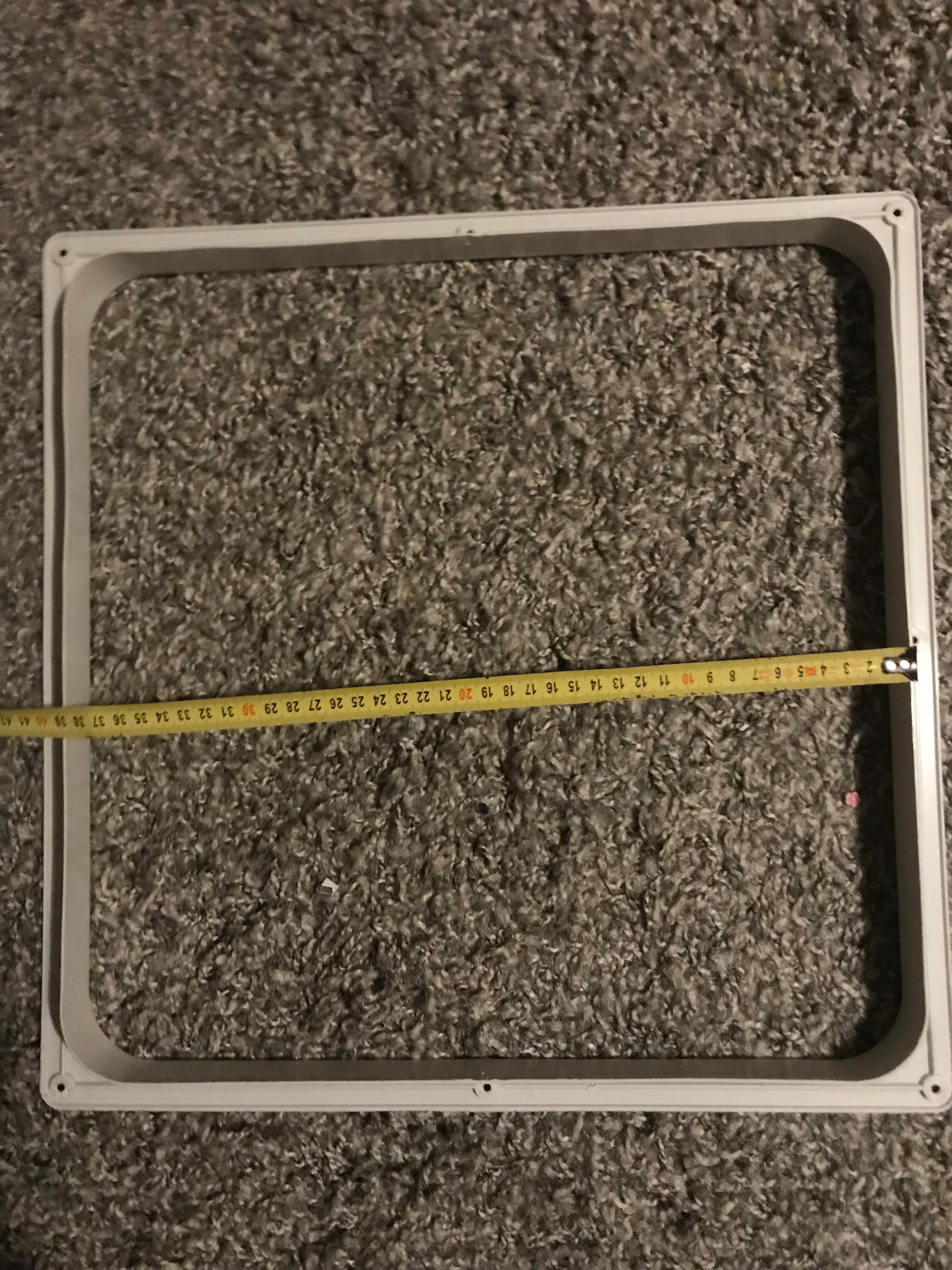 Die Blende für den Durchbruch hat 39cm. Da an allen Seiten Luft ist dürfte das Loch 40x40cm haben.