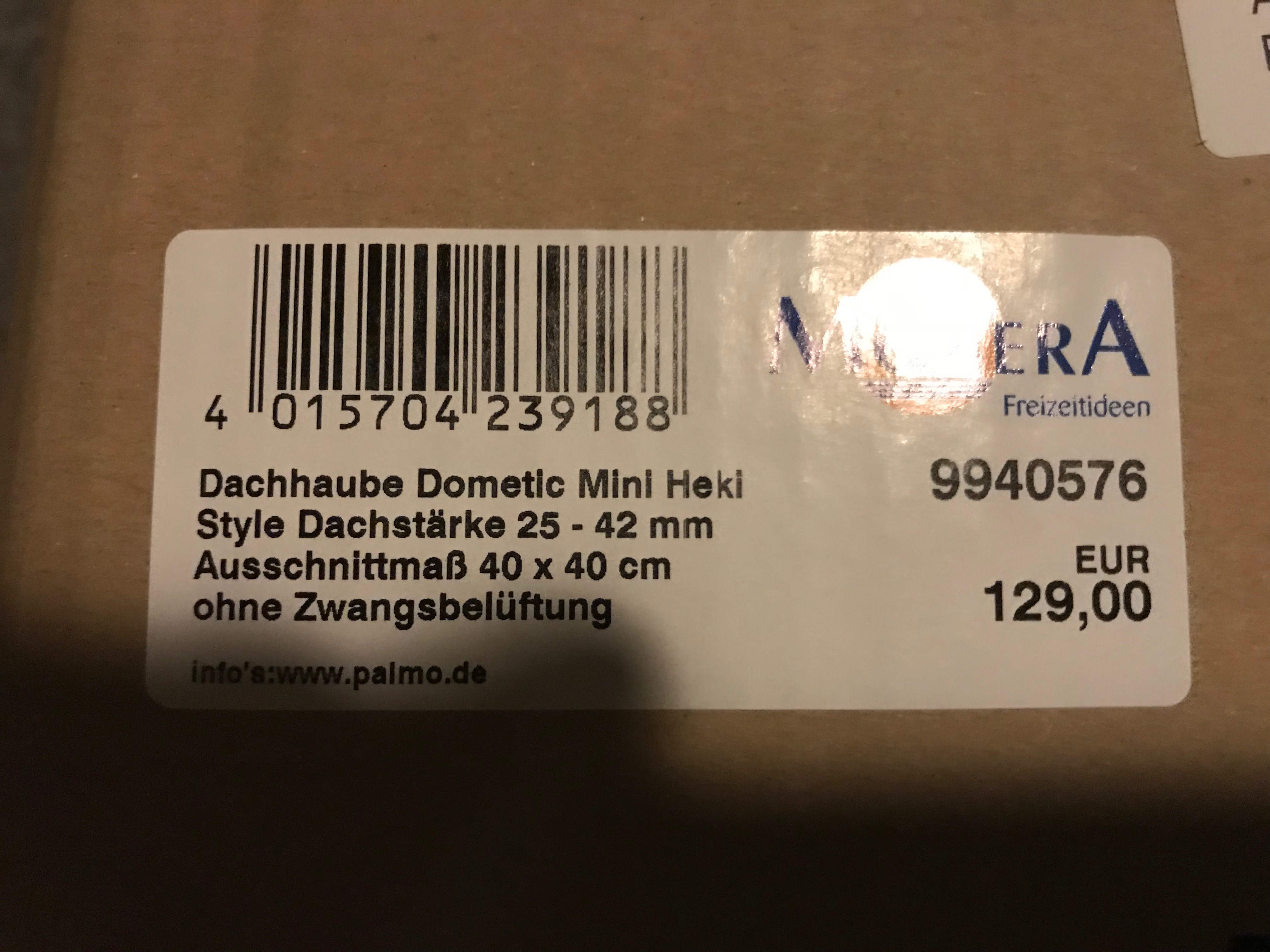 nach unserer ersten Ausfahrt liegt mir das Thema Dachhauben am Herzen. Da Palmo noch bei uns in der Schuld steht werden die XGO Hauben nun durch 2 Dometic Seitz Mini Heki Style ersetzt.
