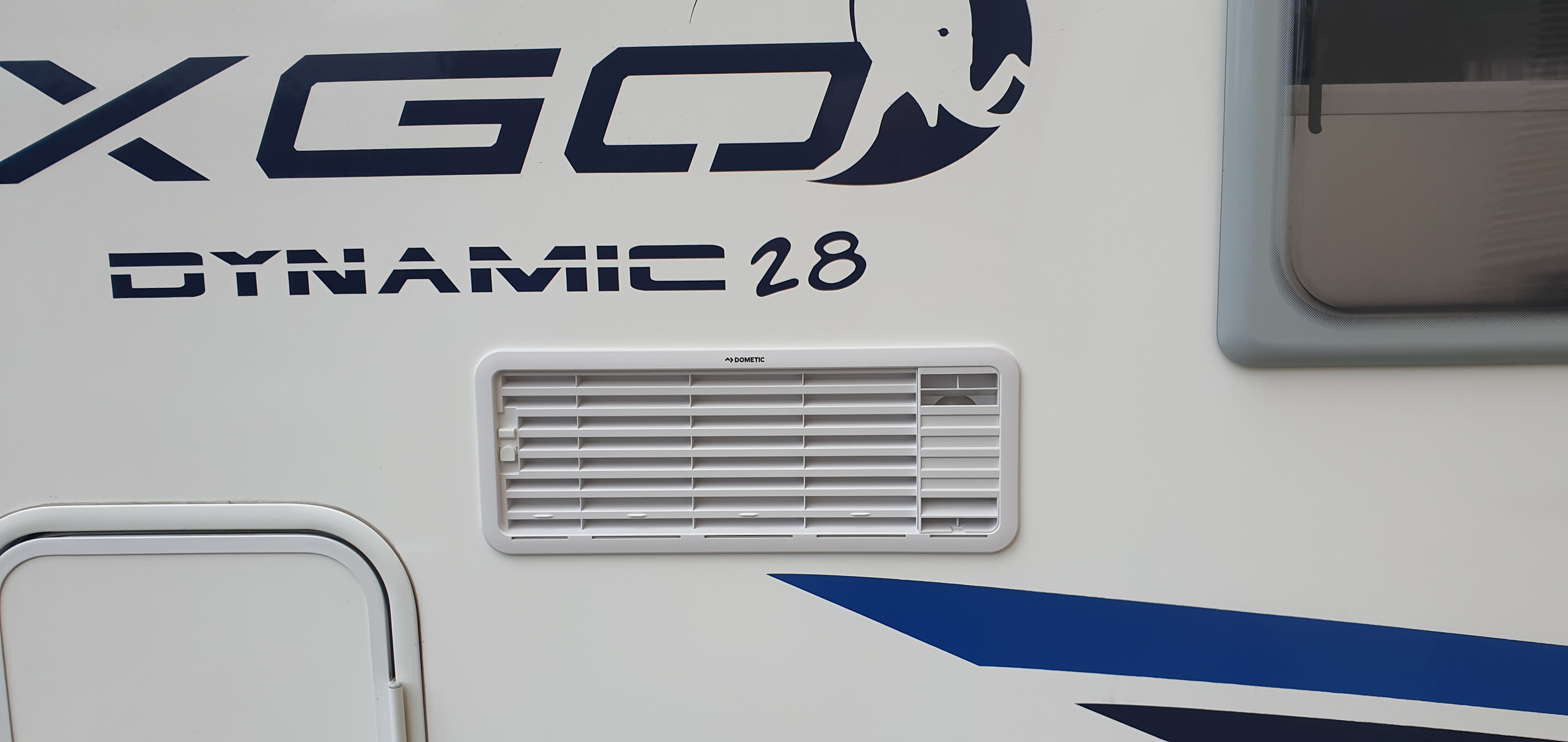 Ich habe mir beim Obelink ein anderes Aussengitter von Dometic gekauft und bei eBay einen passenden Abgaskamin (Original Kamin komplett für Dometic Electrolux Kühlschrank L=195/160mm 2935551-50/3).
