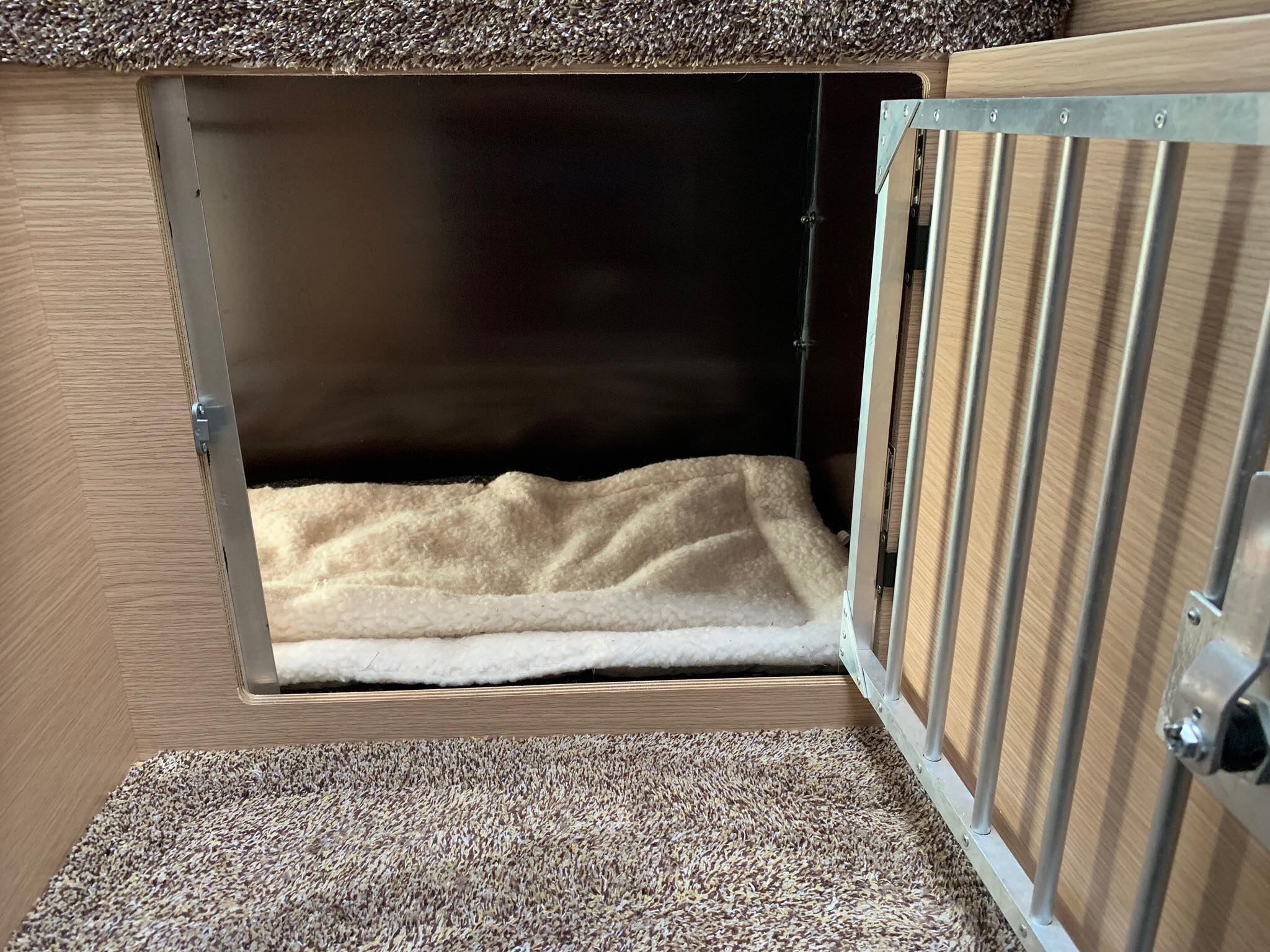 Der größte Um- oder Einbau waren wohl die 2 Hundeboxen, damit unsere 4beinigen Begleiter auch immer sicher mit uns unterwegs sind.