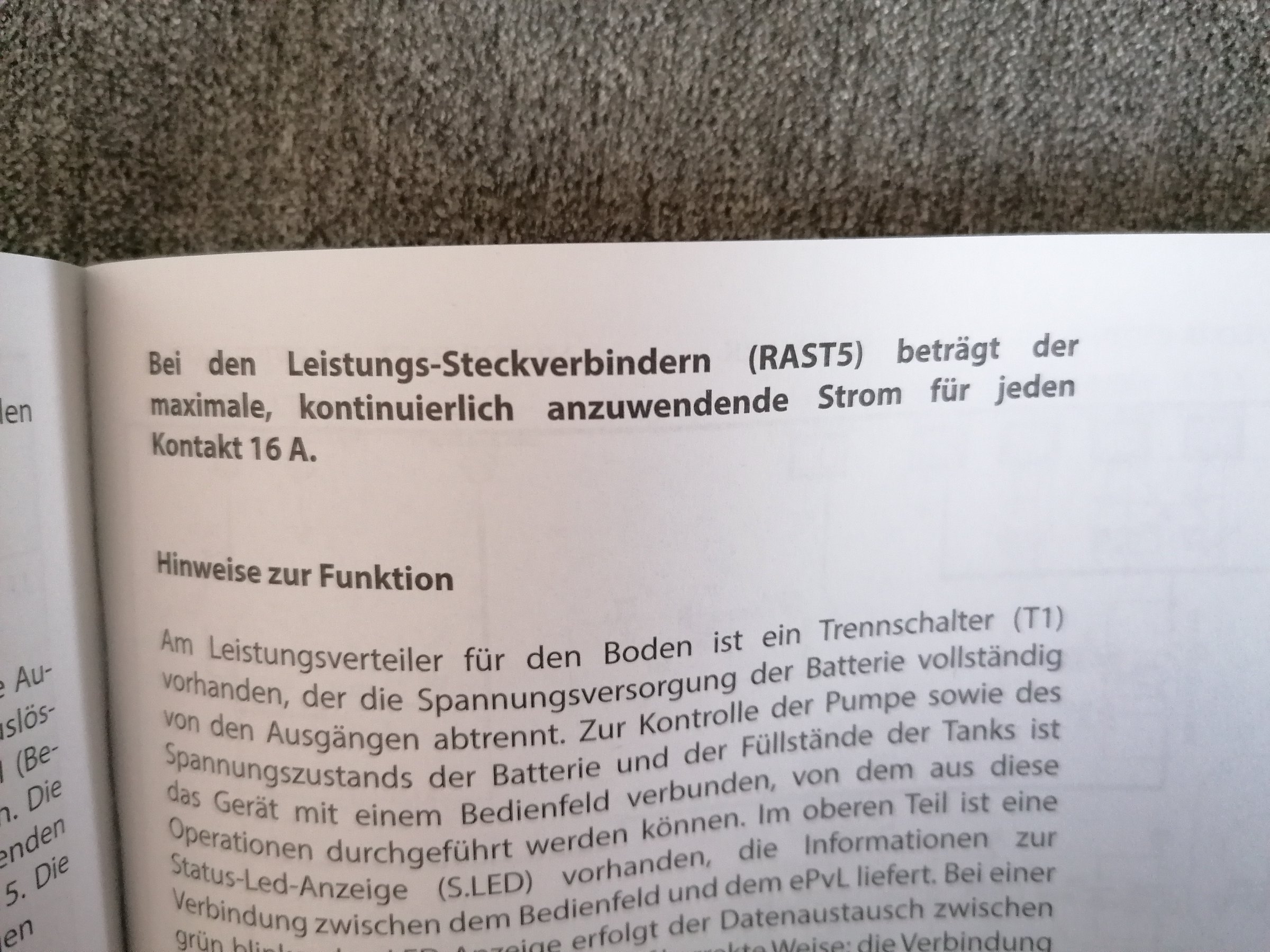 Aus der Bedienungsanleitung geht hervor, dass am Anschluss Rast5 max. 16a angeschlossen werden soll.