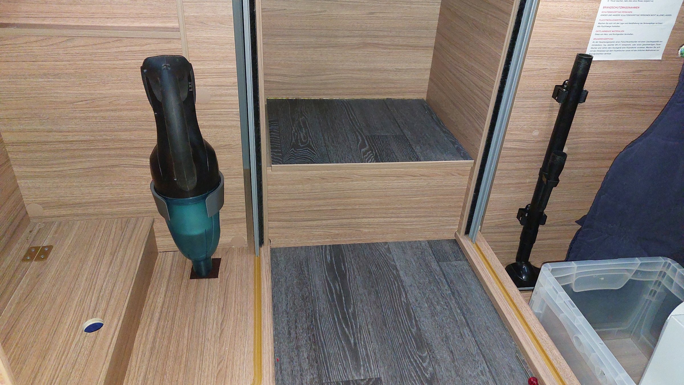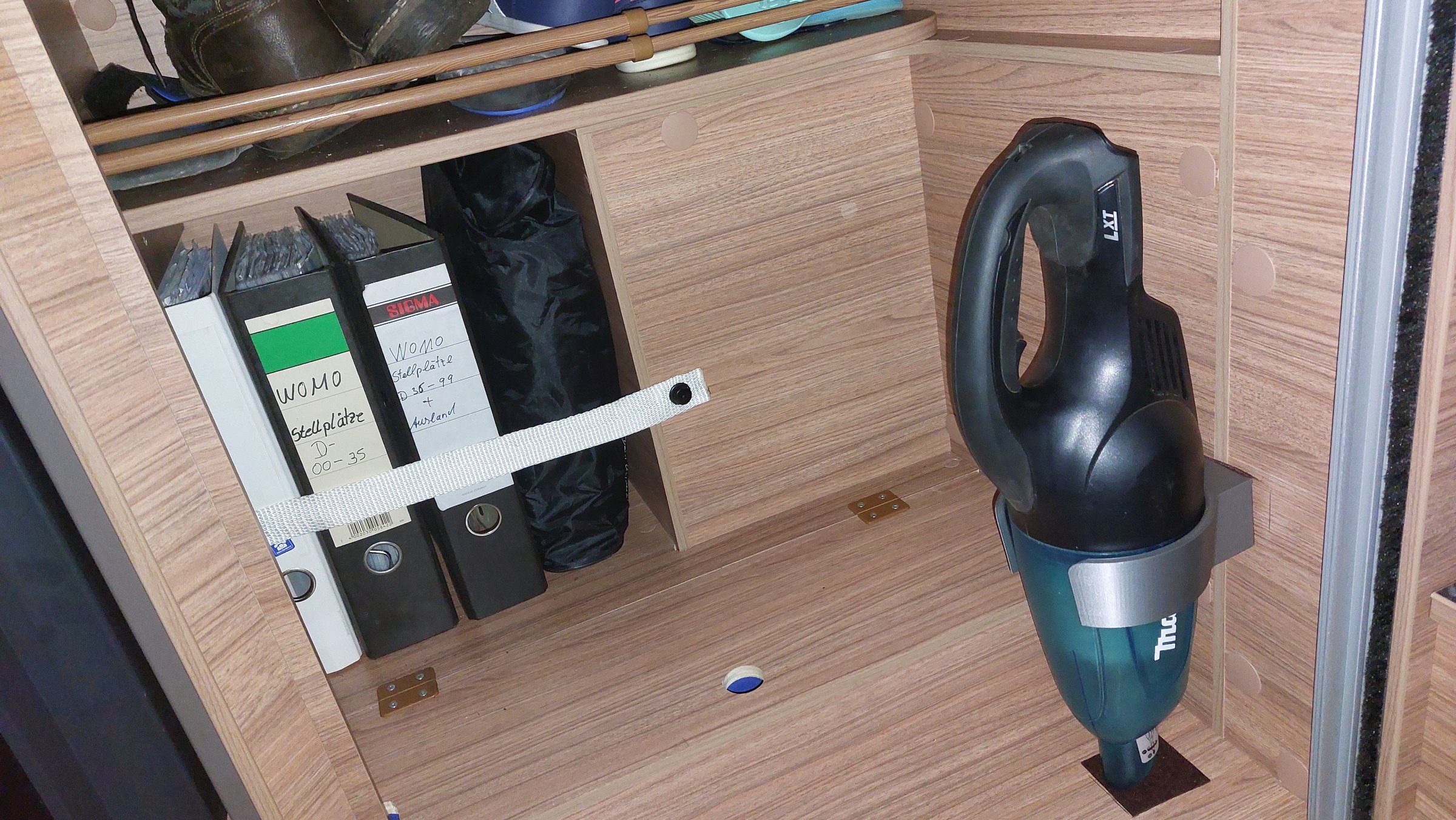 Und nebenbei habe ich 2 Halterungen angebaut für den Makita Akkusauger und dem Zubehör (Rohr, Düse, Bodendüse)