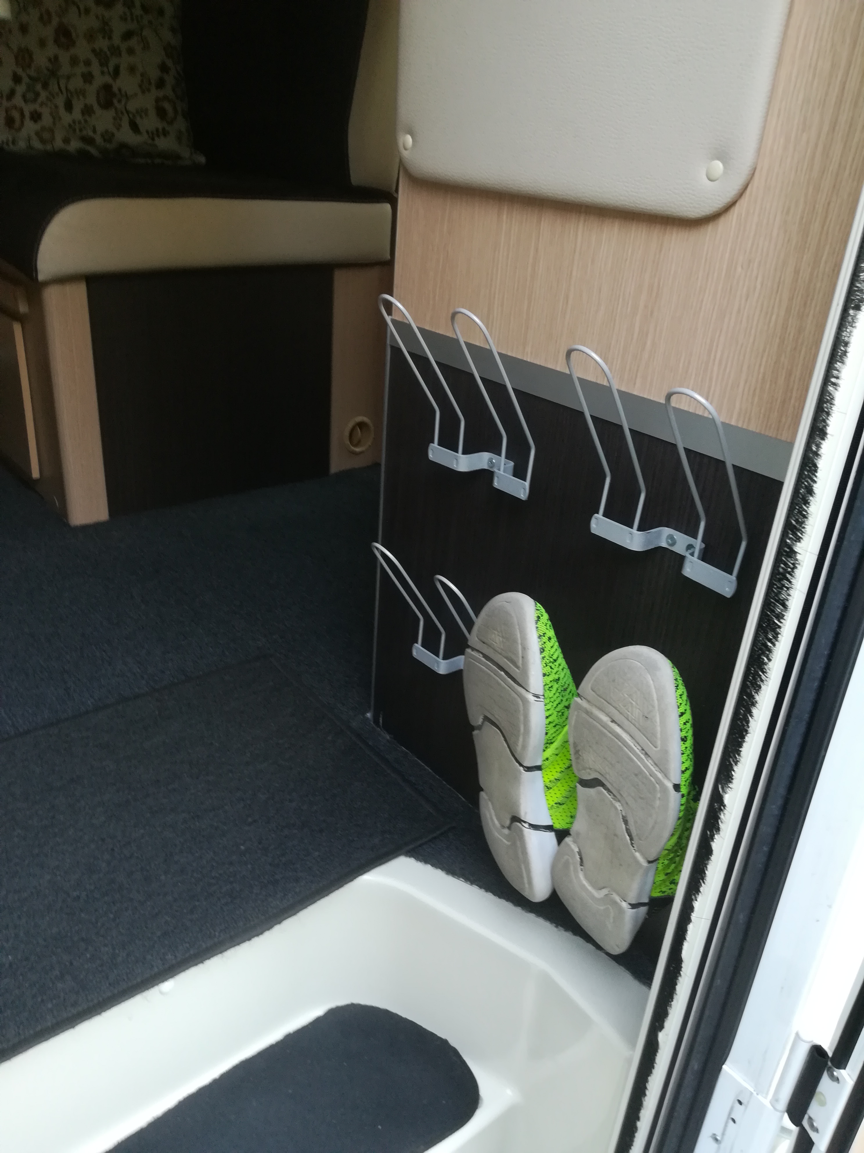 - Im Eingangsbereich Schuhhalter und Zeitungshalter angebracht