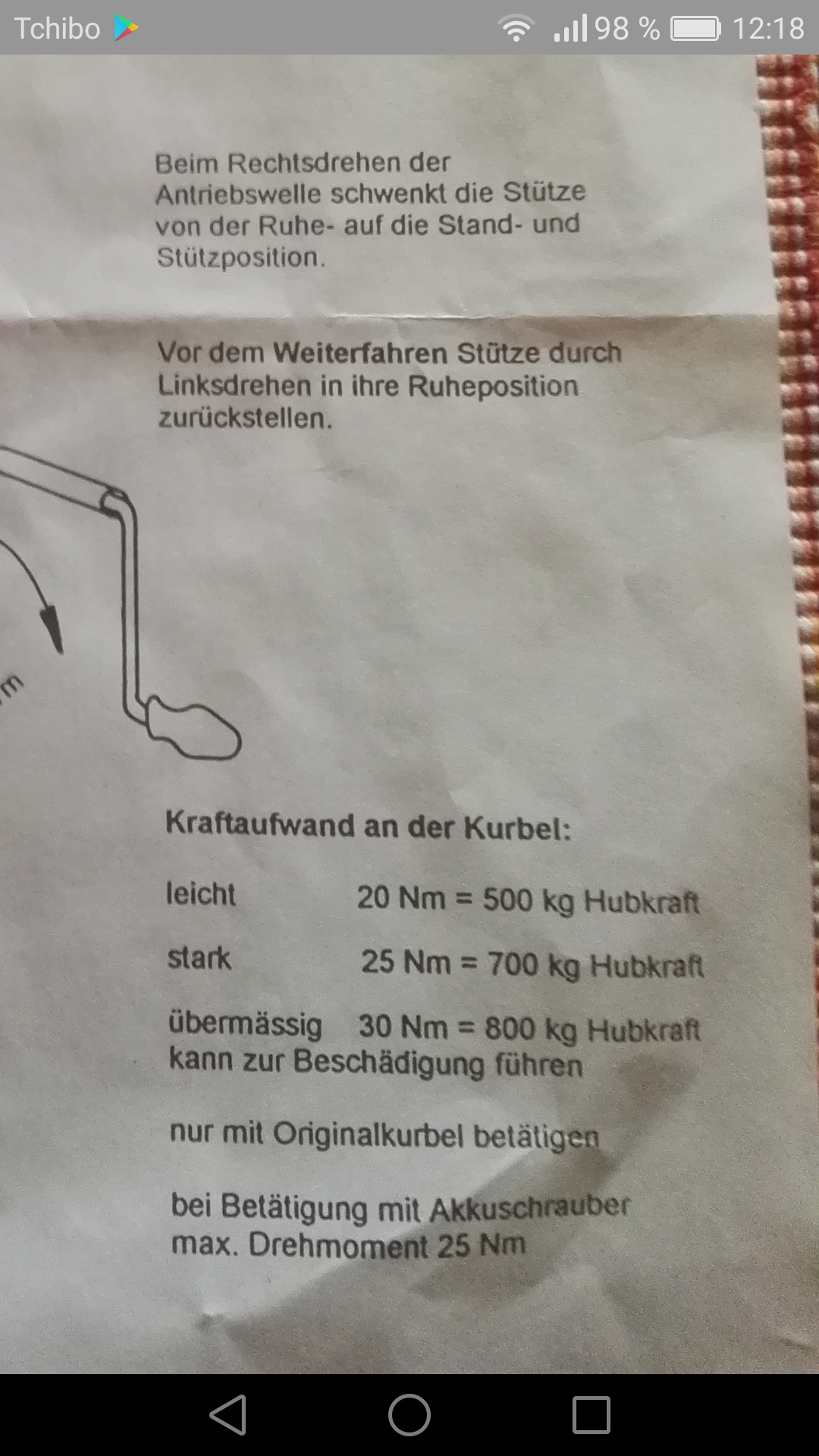 Dafür brauchst du dann Hydraulisch betätigte Stützen.