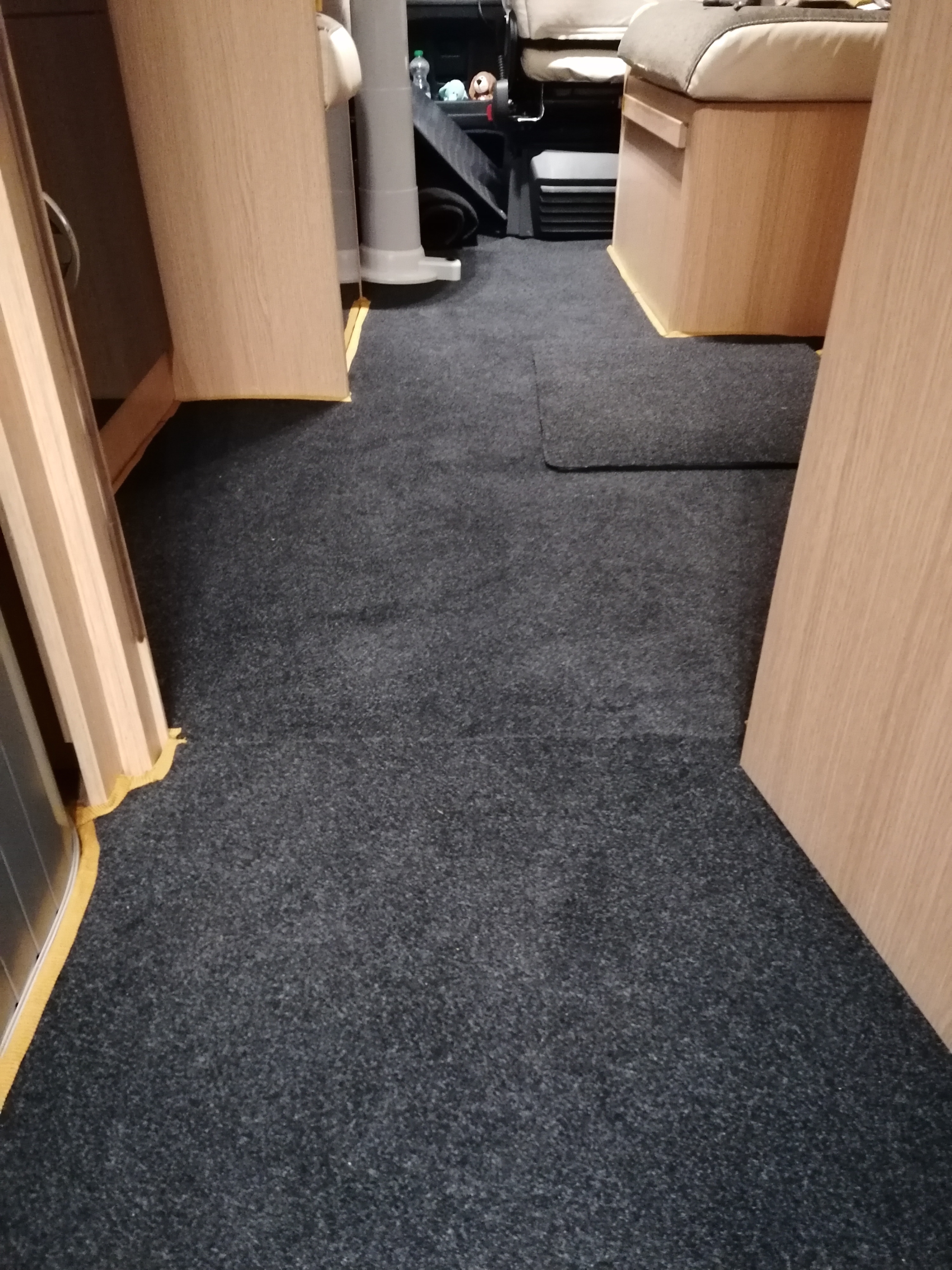 Den Fahrerhausteppisch, selbst angefertift verlegt.