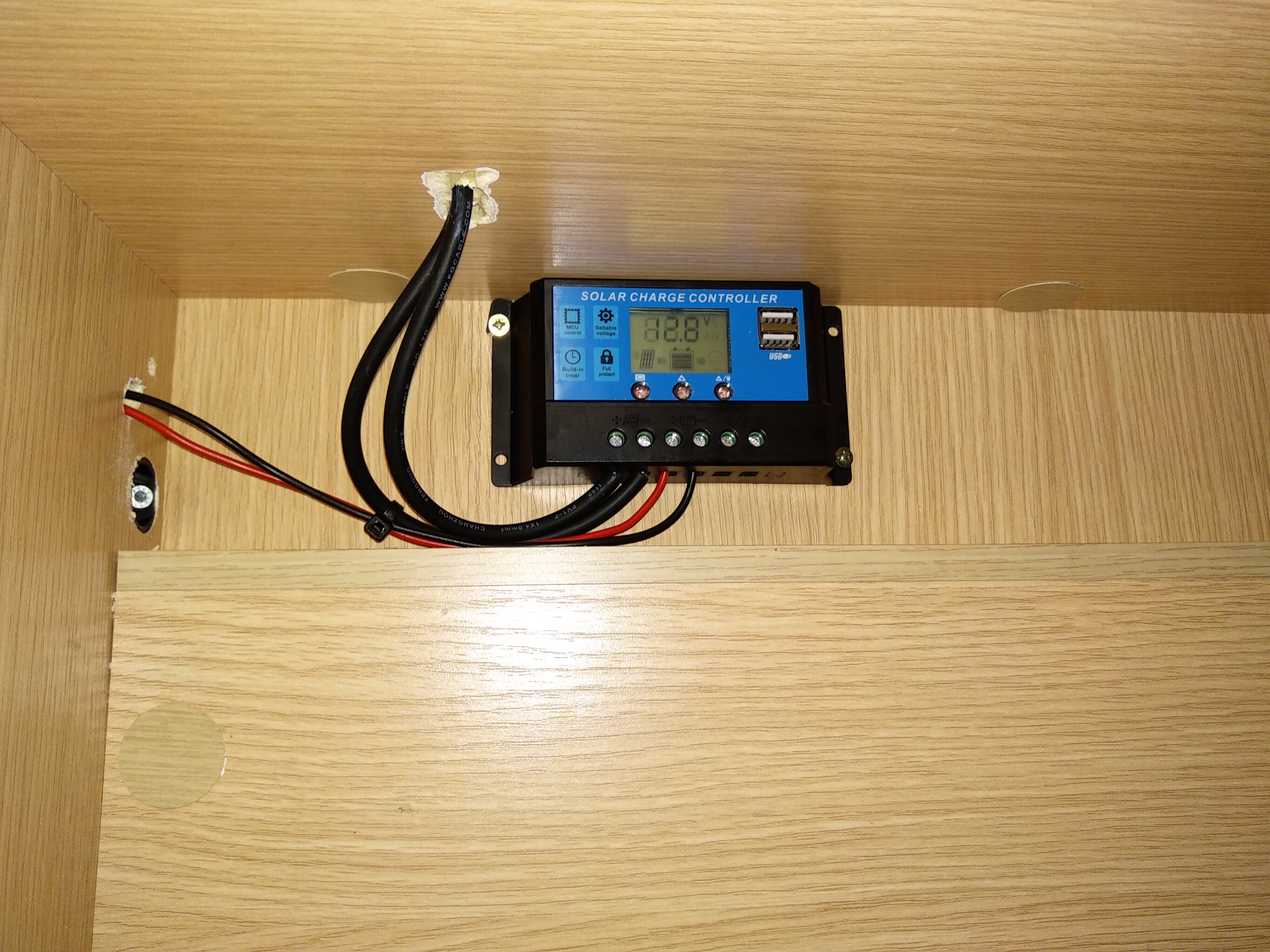 4. Der Laderegler ist am WoMo Panel verkabelt. Da das bei uns nur 50 cm vom Lader ist und echt super gelegen ging das schnell und einfach. Keine weiteren Kabel nötig zu verlegen Und noch mit Beschwerung zum trocknen Insgesamt eine runde Sache und ich finde jetzt habe ich ein richtiges WoMO