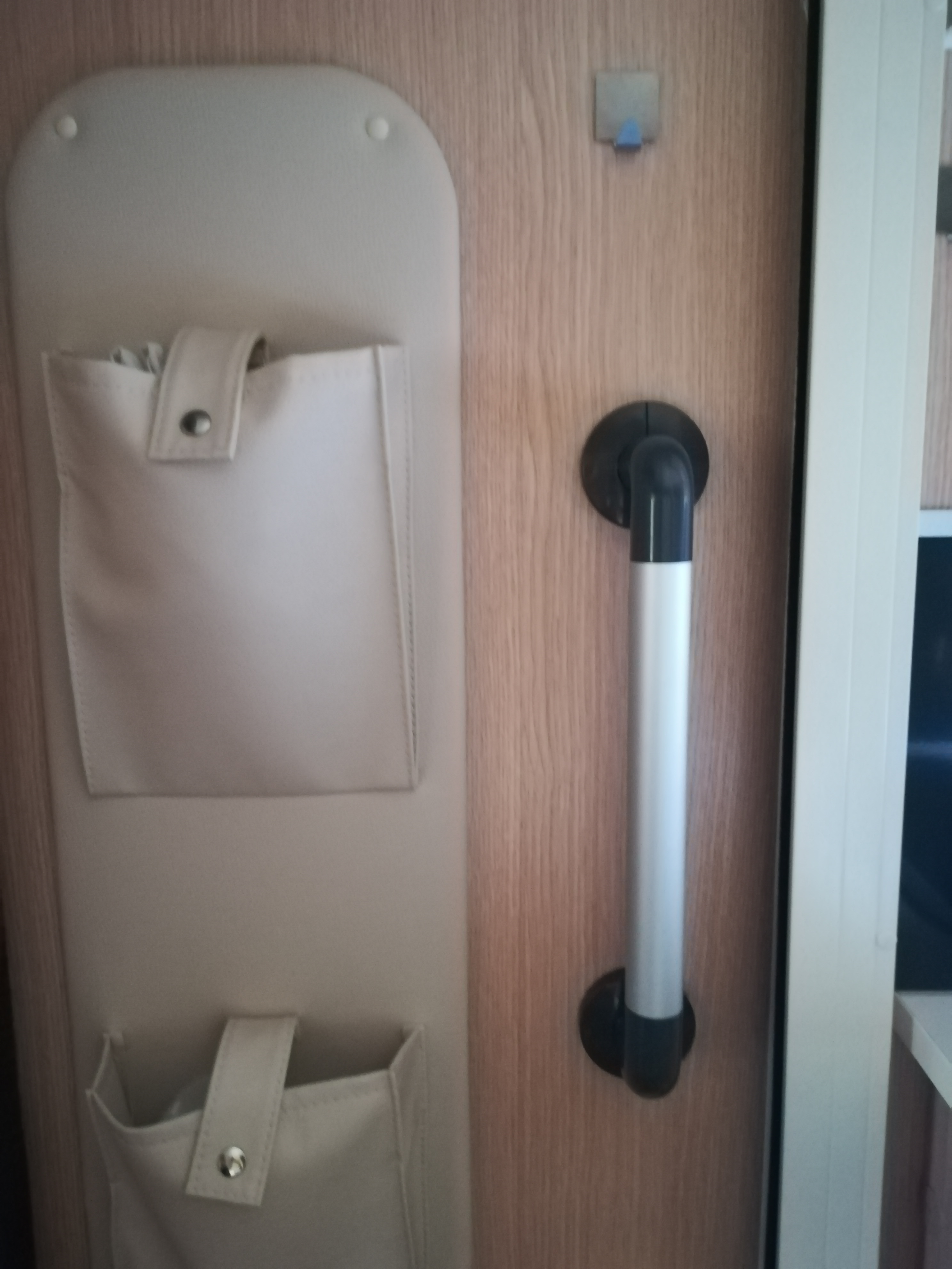 - Ziehgriff an der Tür und Haltegriff in der Treppe eingebaut