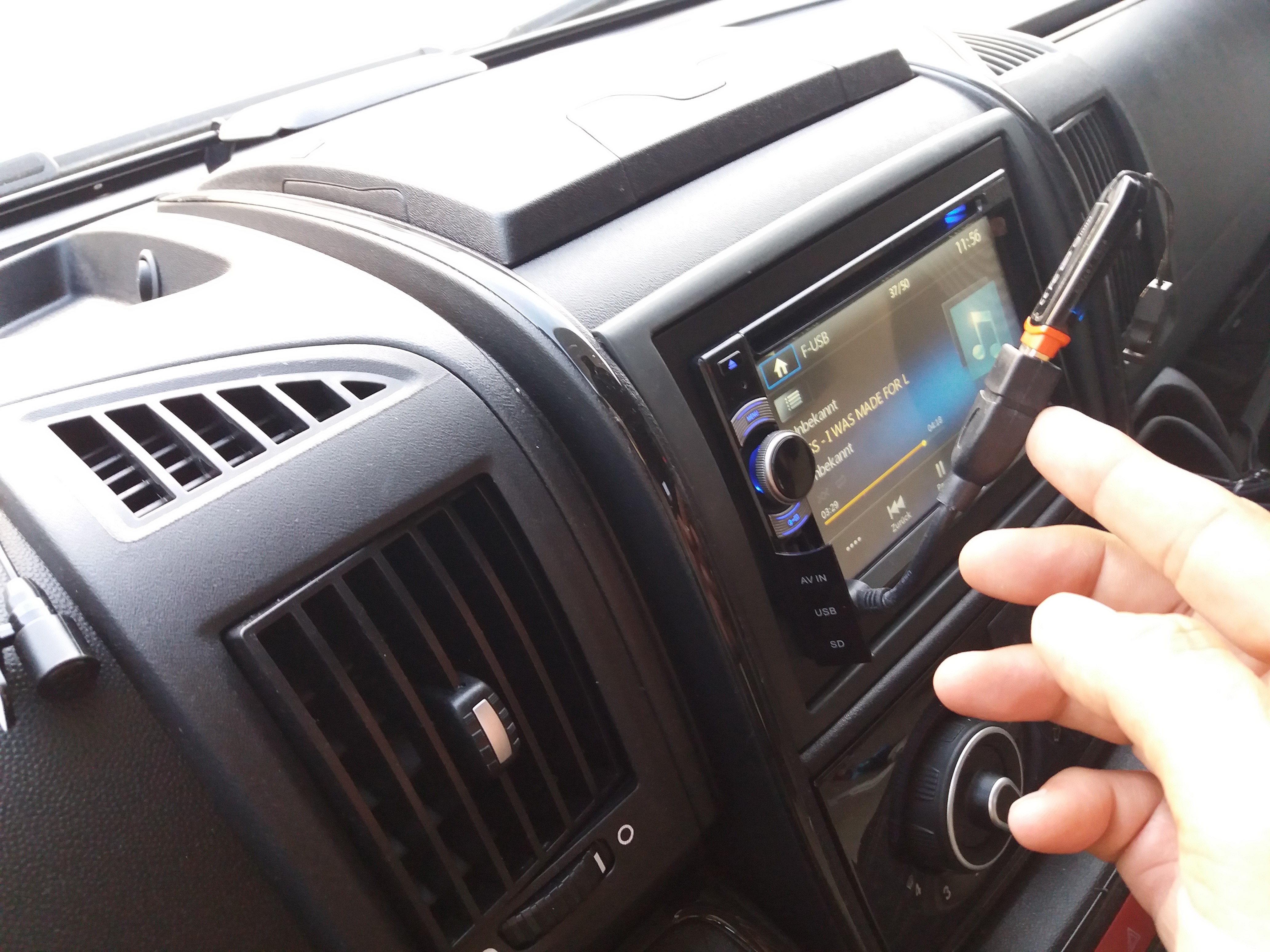 wie ihr ja wisst, ist bei dem Mediacenter von Dometic in der Frontseite leider nur ein Mini-USB, während auf der Rückseite eine normale USB-Buchse ist. Da ich keine Lust habe jetzt das Radio auszubauen um die hinteren USB-Buchse durch Verlängerung nach außen zu legen habe ich mal was anderes getestet.