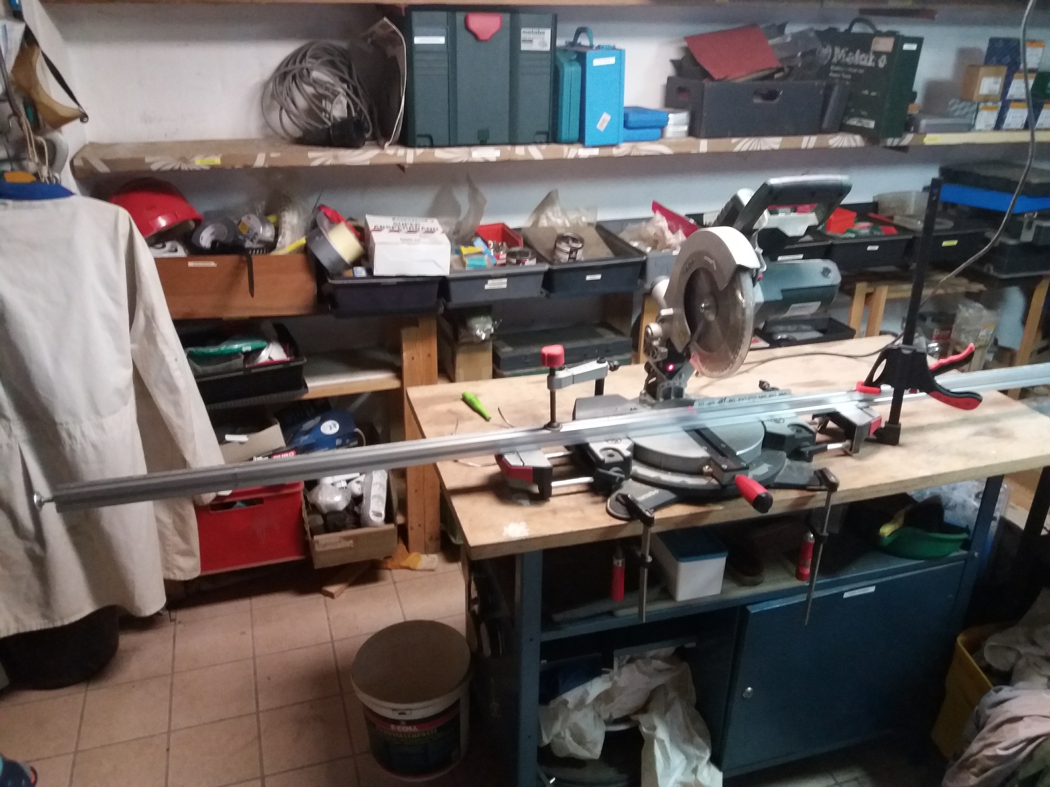 Bei der Firma eines Freundes wurde ein Messestand verschrottet, und er hat mir davon einige Alu-Profile kostenlos überlassen.