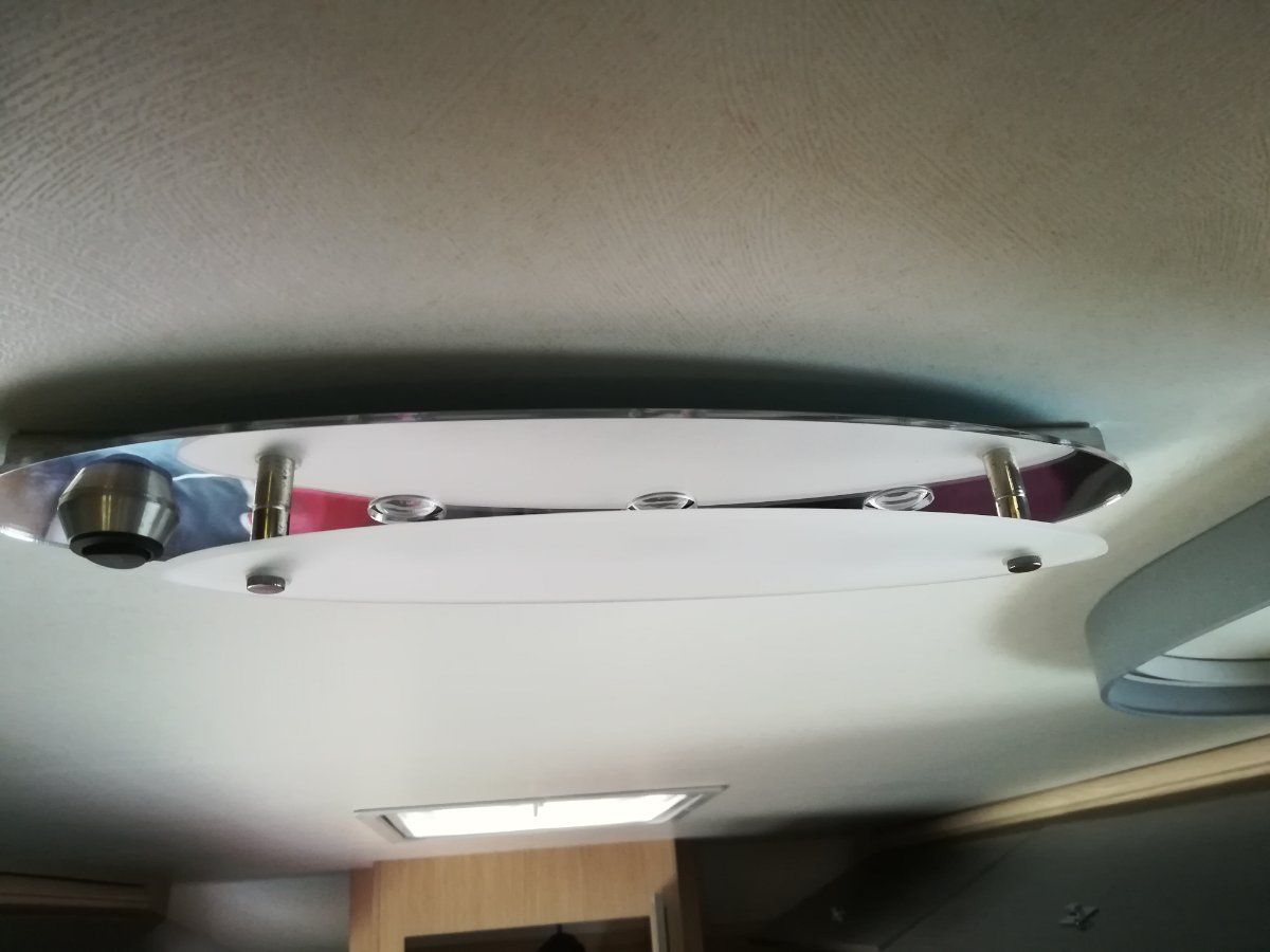 die Deckenleuchte im hinteren Bereich des Wohnmobils leuchtet nur noch schwach. Also habe ich die Deckenleuchte geõffnet, um mir die Grõße der Leuchtmittel anzuschauen. Leider musste ich feststellen, dass ein Auswechseln offenbar nicht möglich ist. Sitzt alles bombenfest und verlötet.