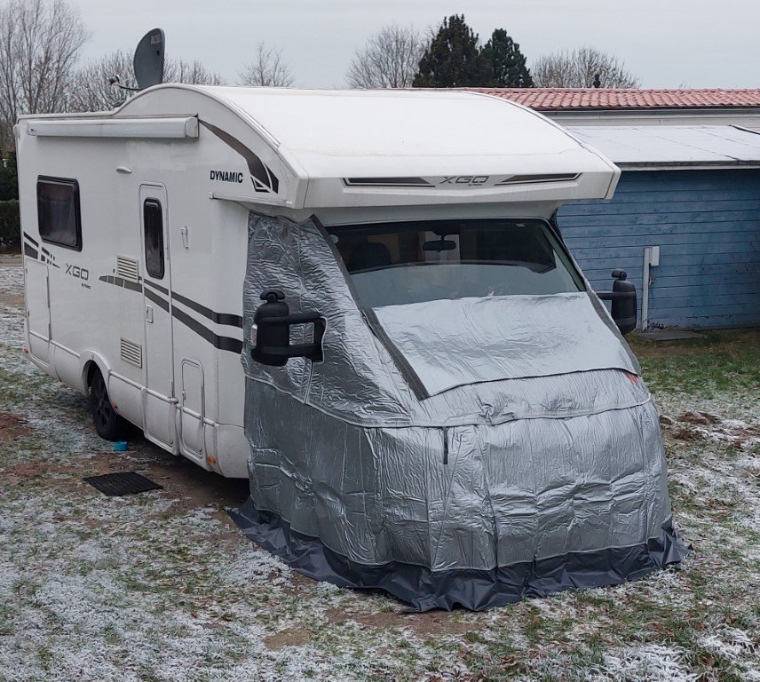 Im Winter haben wir auch manchmal das untere Teil benutzt. Dadurch war es vorne auf den Sitzen viel wärmer. Die Abdeckung hält die Wärme im Fahrzeug fest. Die Scheiben sind dann morgens nicht mehr beschlagen, da die Scheibe durch den Innenraum mit aufgewärmt wird.