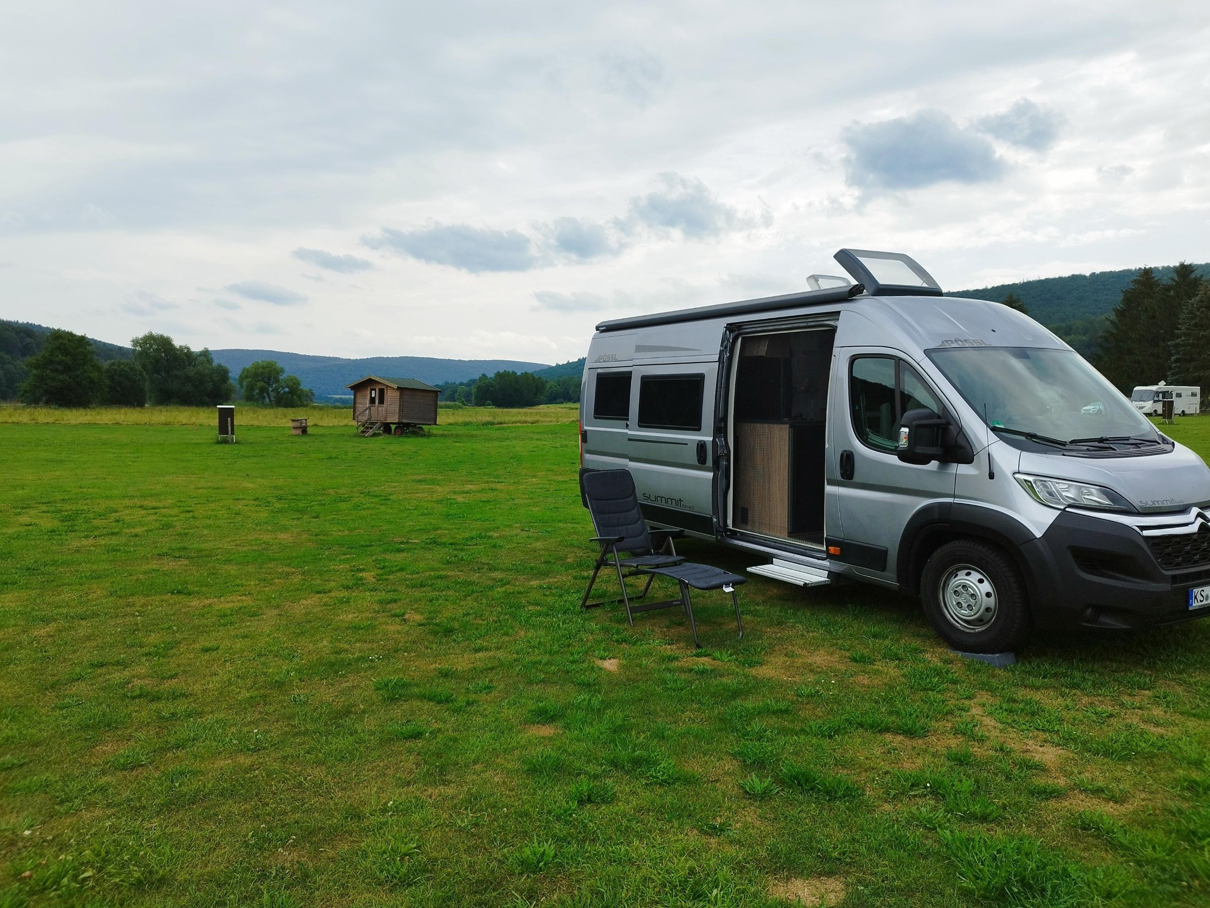 Weissehuette an der Weser oder jemand hat einen vergleichbaren Platz im Angebot: Eine große Wiese mit der Freiheit zu tun was man will.