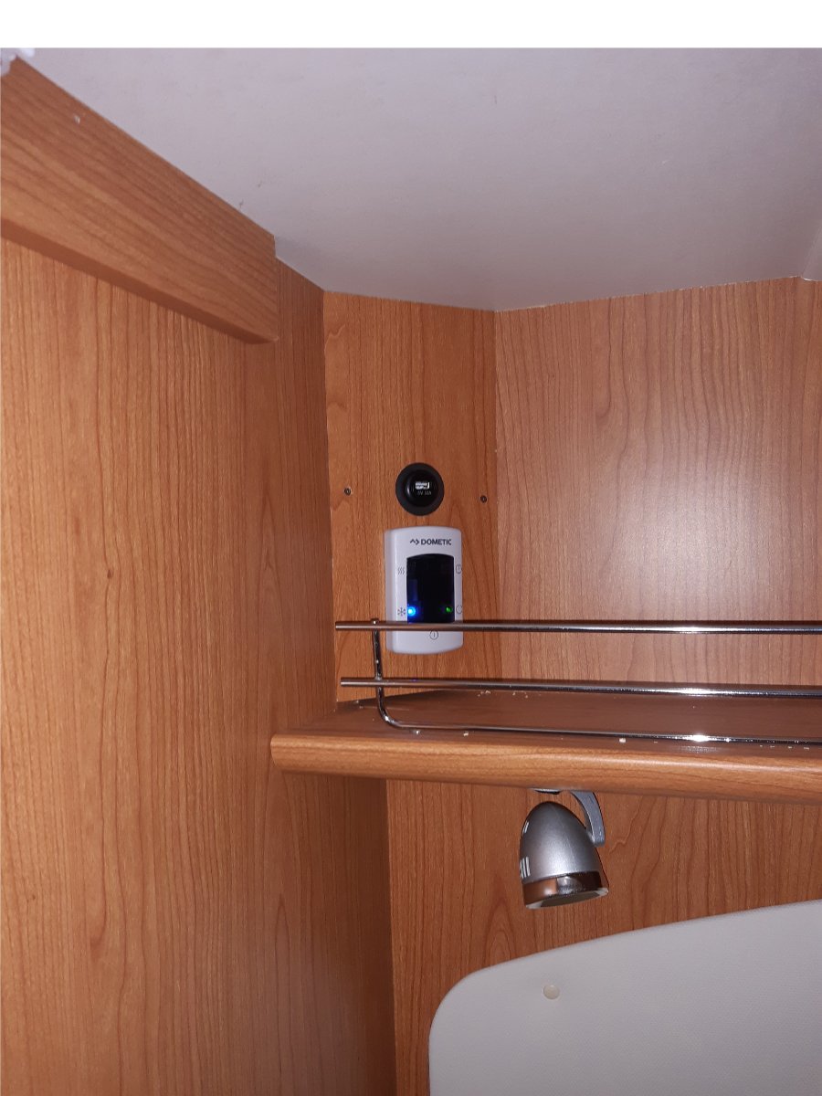 Eine Änderung der Luftverteilung habe ich nach letztem Sommer noch vorgenommen. Der Luftauslass unter der Decke Richtung Wohnraum wurde still gelegt und dafür ein Neuer im Bereich des Heckbettes (ebenfalls knapp unter der Decke) verlegt. Wir haben festgestellt, daß man sich tagsüber eh draussen aufhält und es wichtiger ist wenn der Schlafbereich gekühlt ist. Der alte Luftauslass dient jetzt als Schrankbelüftung.