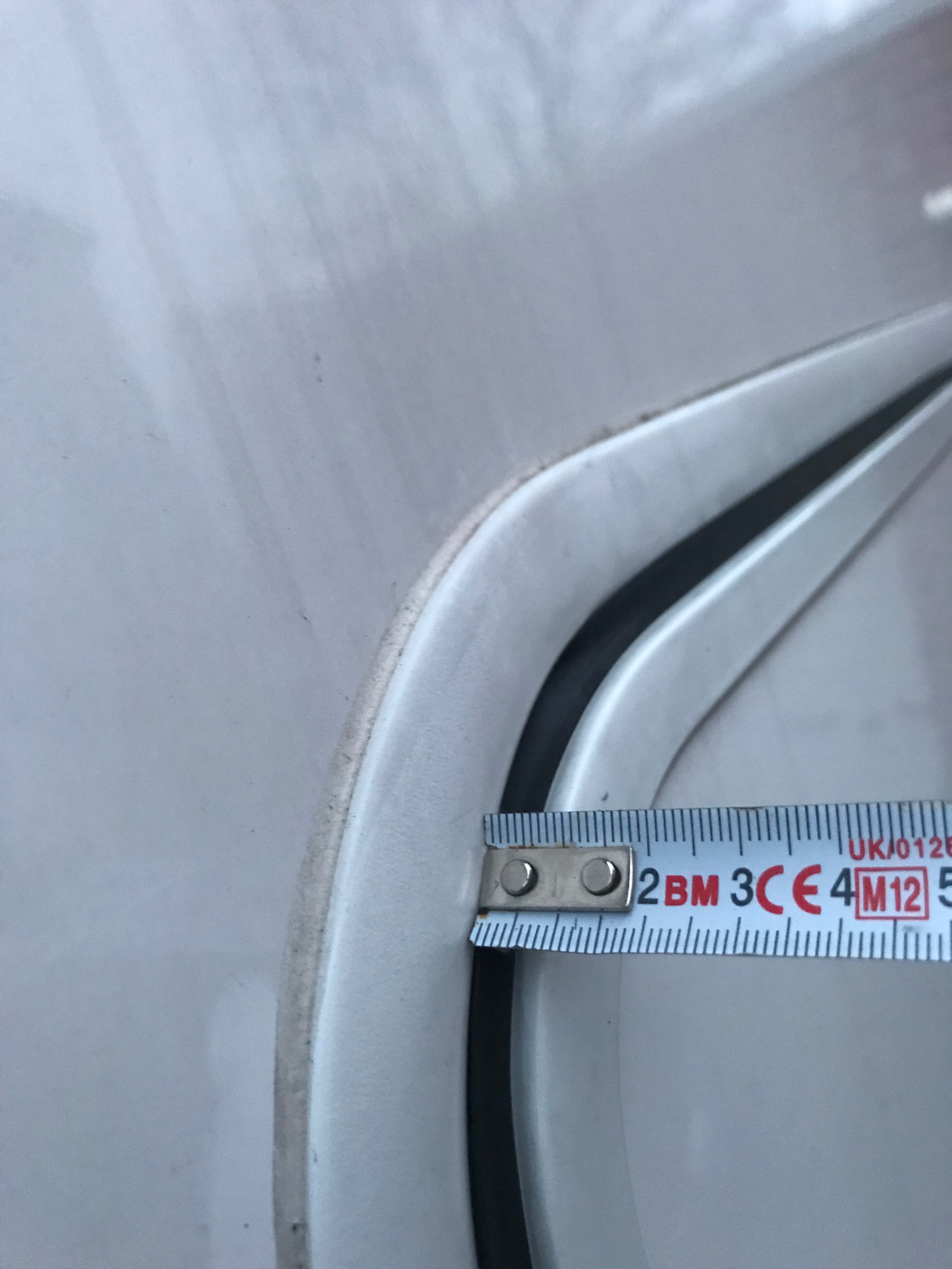 Sie ist total verzogen. Während der Fahrt treten starke Windgeräusche auf.