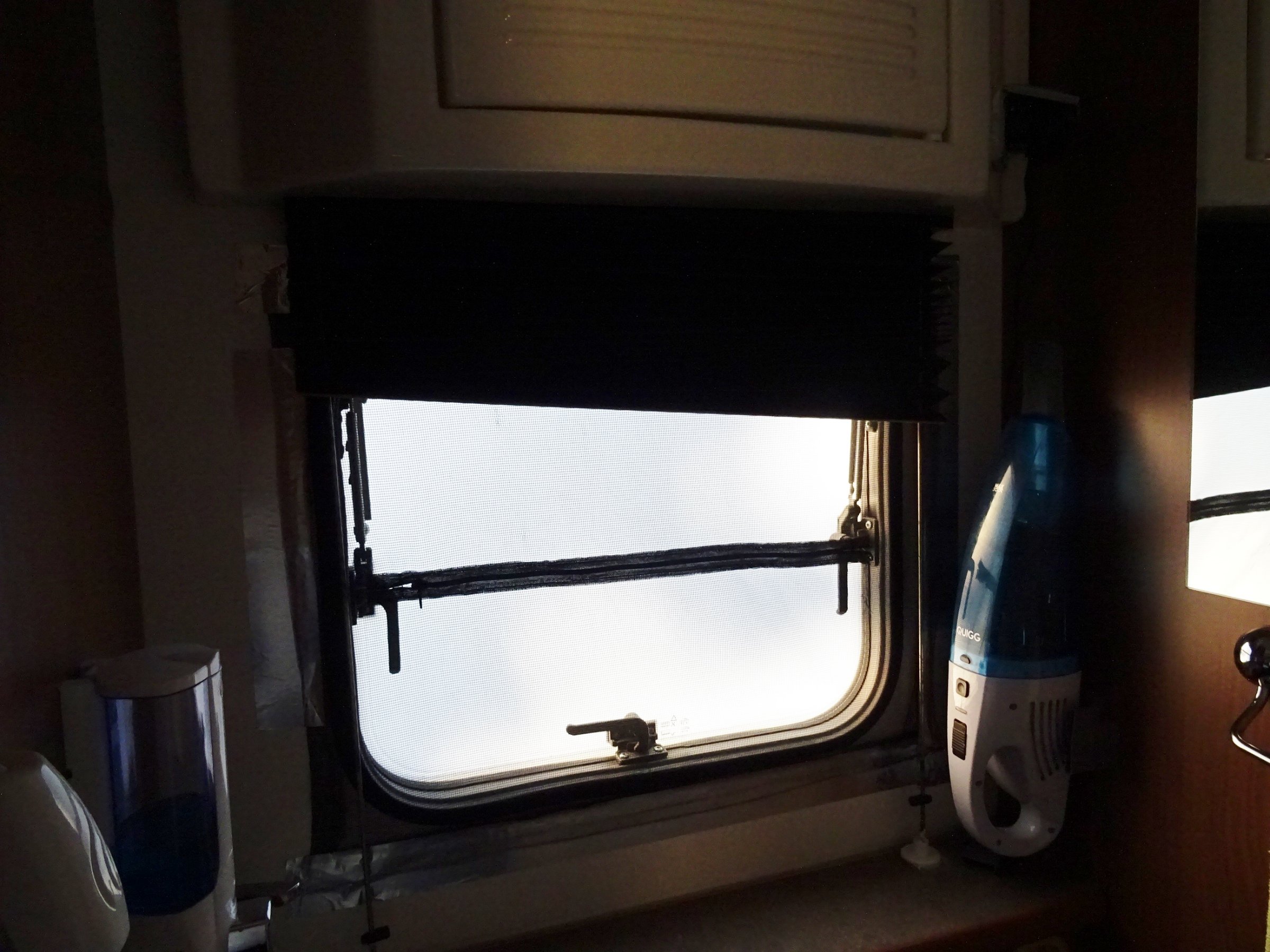 Wir haben eine Fliegengaze für Dachfenster mit Reisveschluß und ein einfaches Plissee von IKEA.