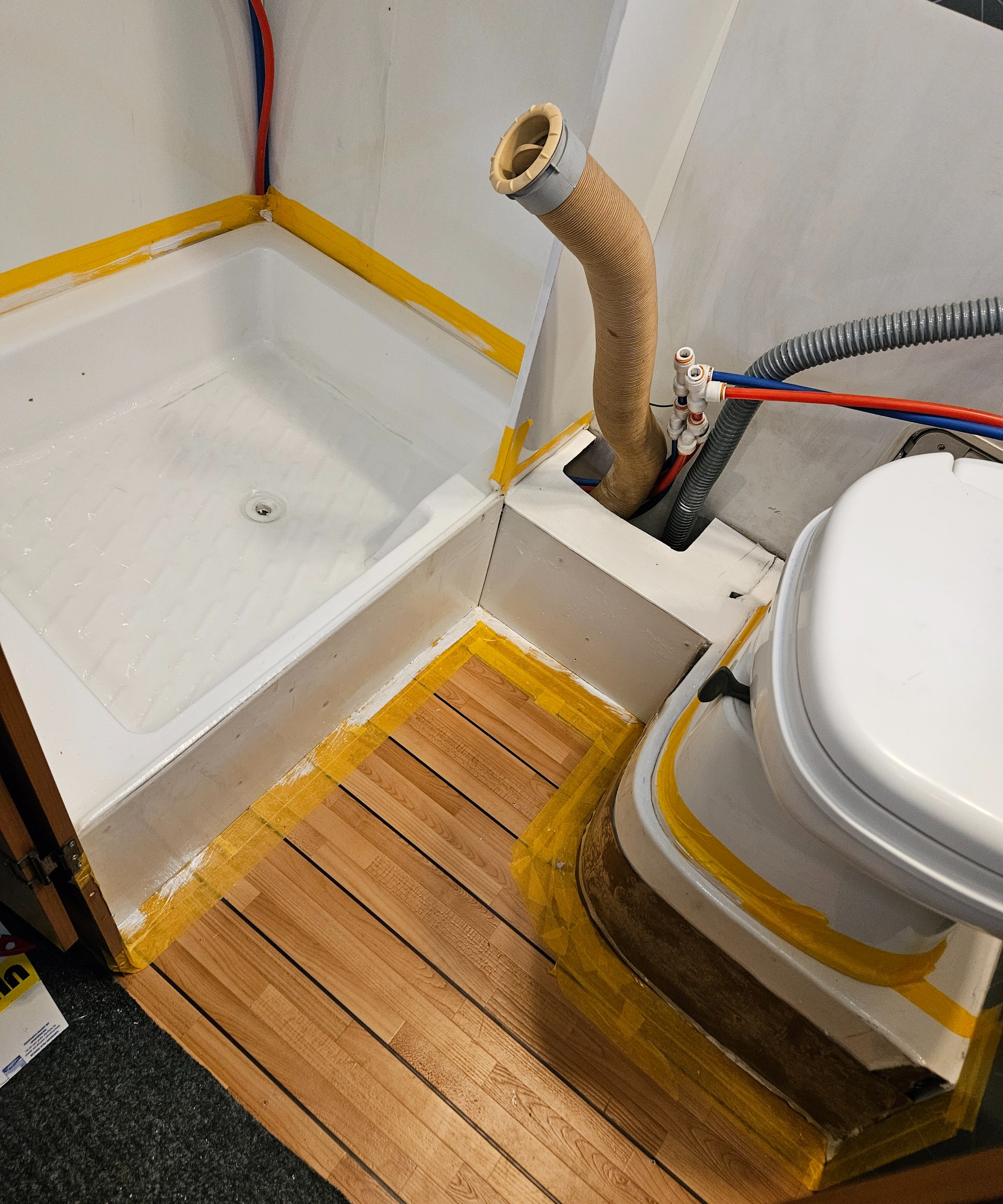 Die Duschwanne wurden mit Epoxidharz und Glasfasermatten auflaminiert und Lackiert.