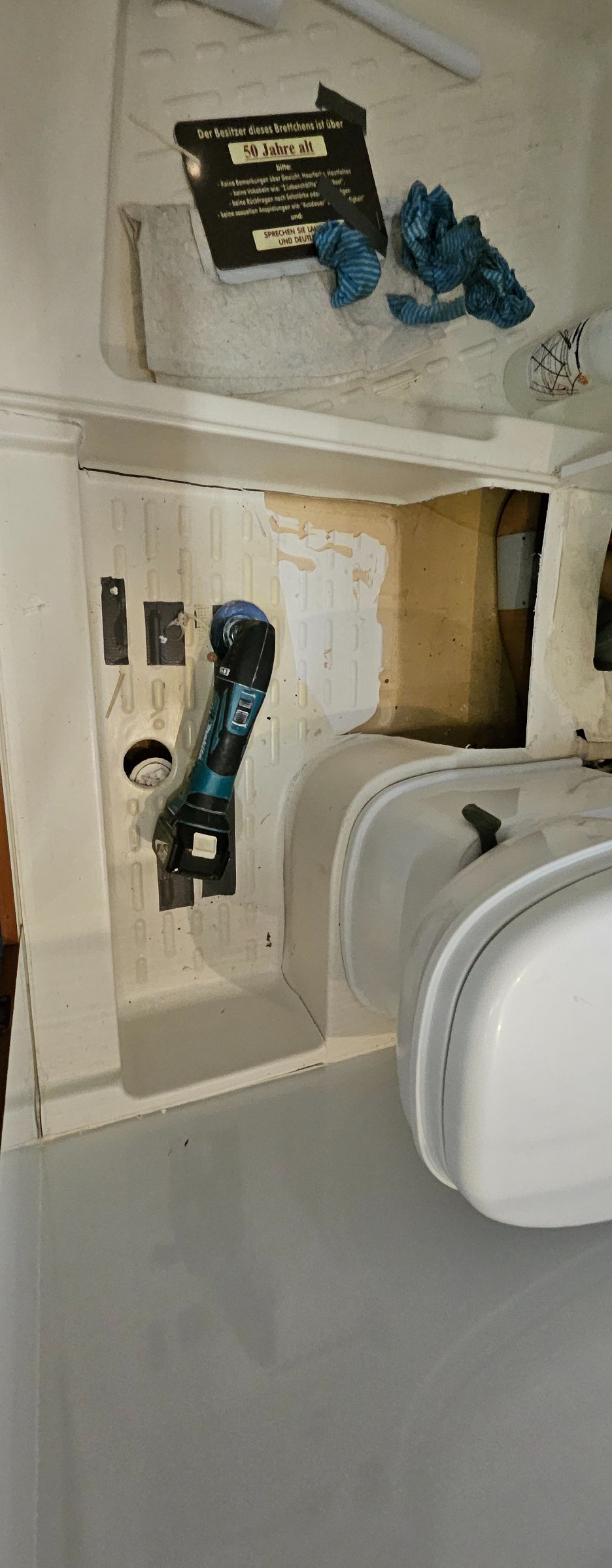 Also ging ichs an, die wanne vor der Dusche wurde herausgetrennt und neue Verkleidungen an den offenen Stellen mussten mit Gfk neu modelliert werden.