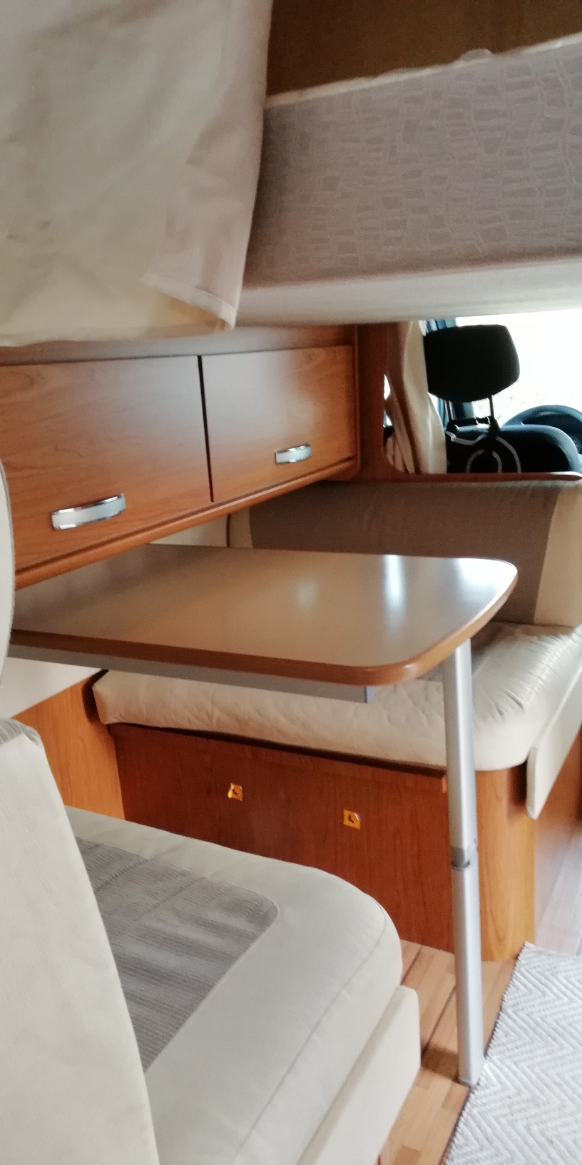 Also wir haben in unseren Coupe 300 Plus das Hubbett über der Sitzugruppe. Natürlich kann man bei runtergefahrenen Hubbett nicht mehr darunter sitzen, aber das ein und aussteigen funktioniert auch ohne das man Limbotänzer ist.