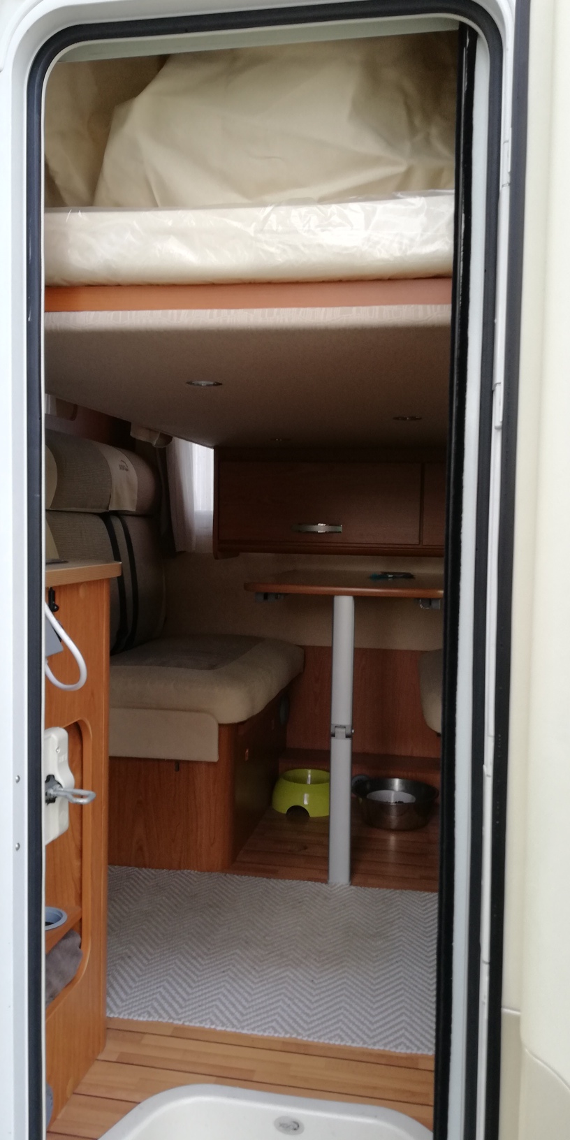 Das Hubbett befindet sich ja über der Dinette. Da kommst du nicht so einfach aus dem Fahrzeug. Ausserdem ist bei Runtergefahrenem Hubbett die Nutzung des Wohnraumes nicht möglich. Ausserdem ist das Hubbett sehr schwer.