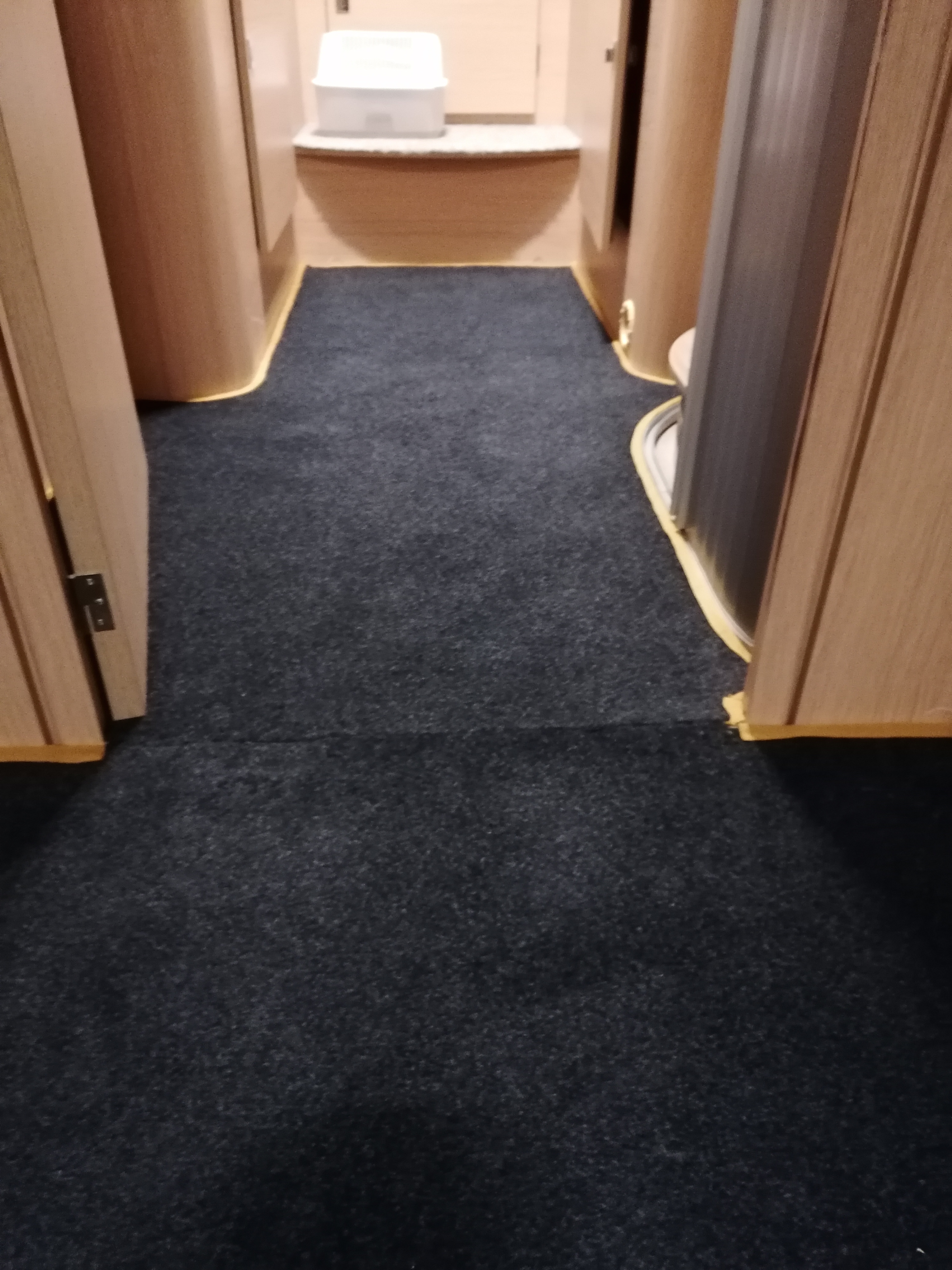Den Fahrerhausteppisch, selbst angefertift verlegt.