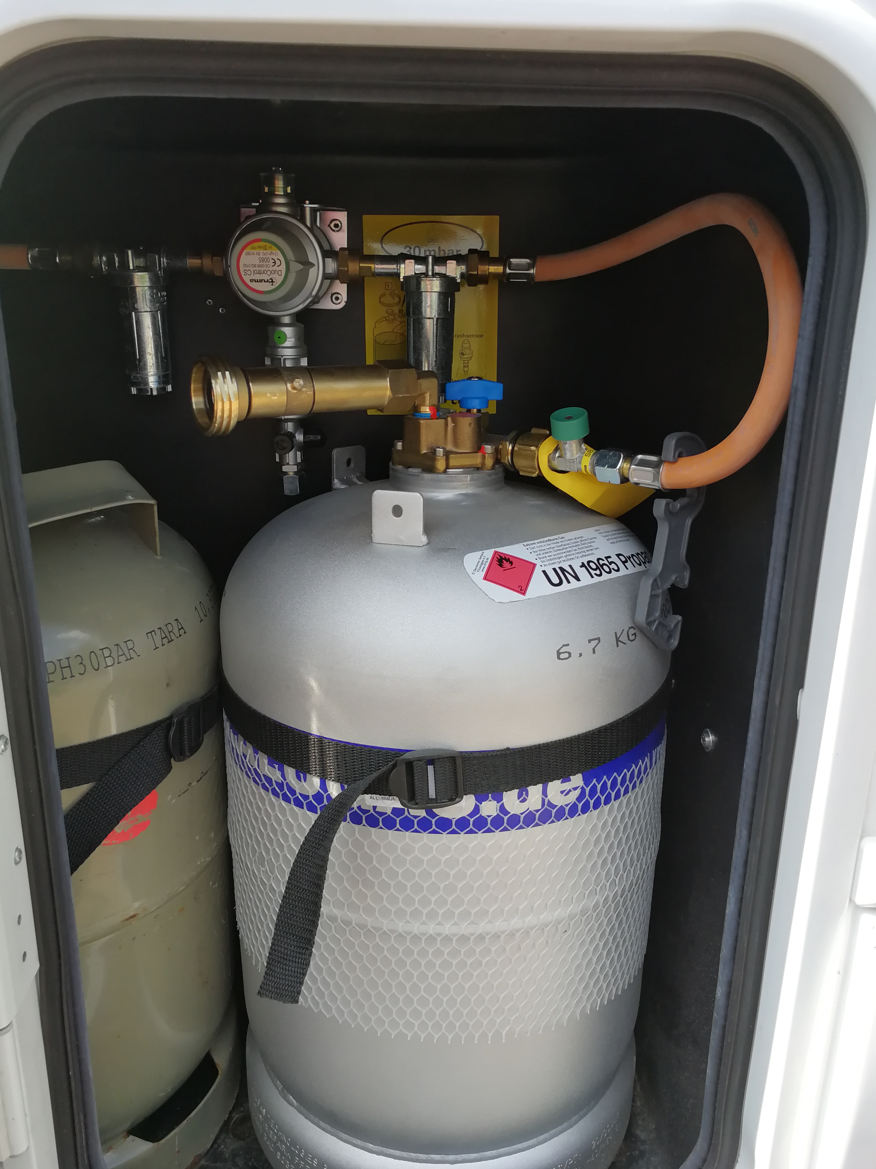 Mit Michael P22 habe ich das schon durch diskutiert und er hat sich jetzt auch schon eine Gas-Tankflasche von ALUGAS bestellt. Das werde ich wohl nach dem Urlaub auch tun. Eine graue Tauschflasche hinten als Backup rein und vorne kommt die ALUGAS zum selber füllen.