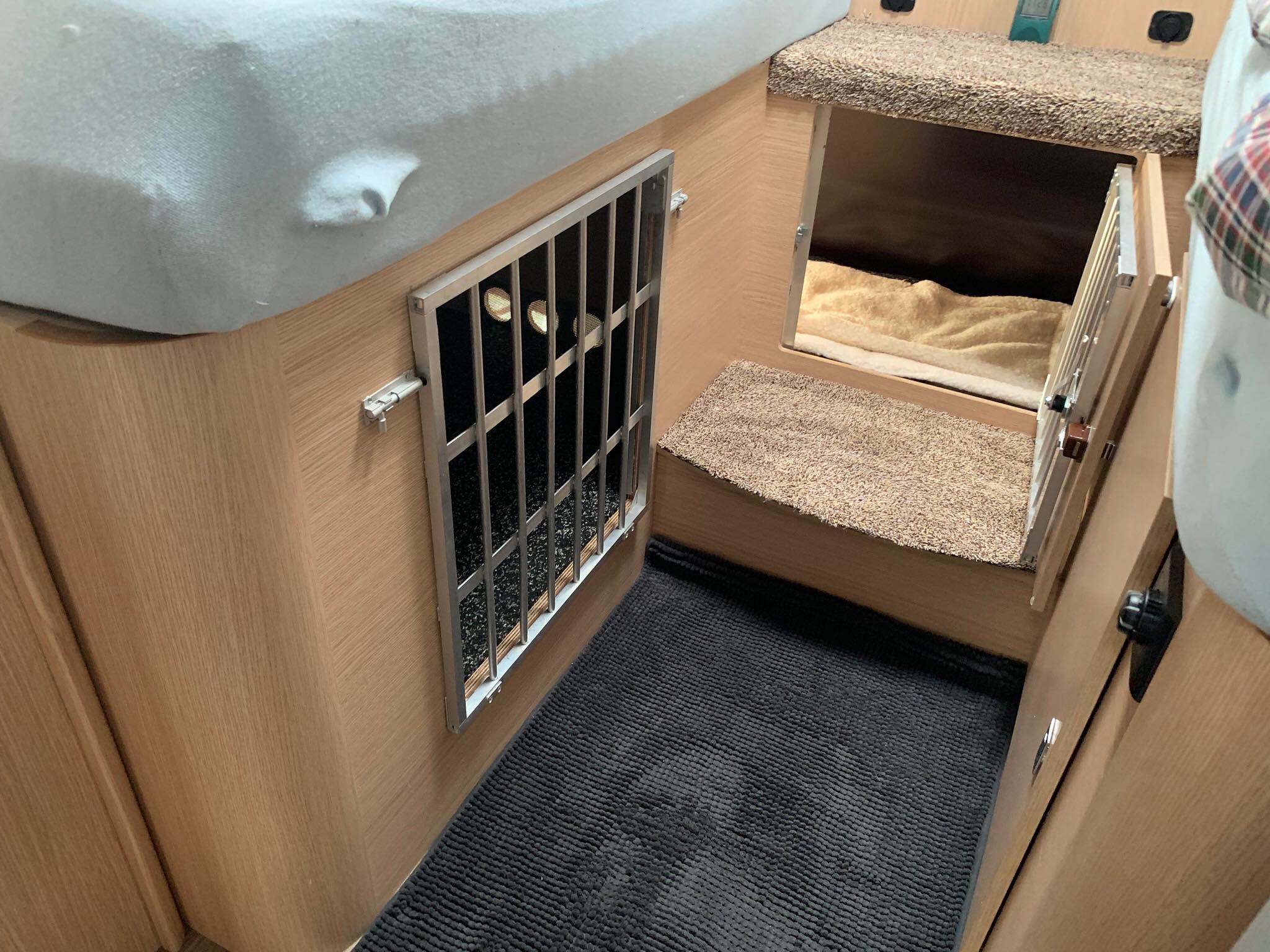 Der größte Um- oder Einbau waren wohl die 2 Hundeboxen, damit unsere 4beinigen Begleiter auch immer sicher mit uns unterwegs sind.
