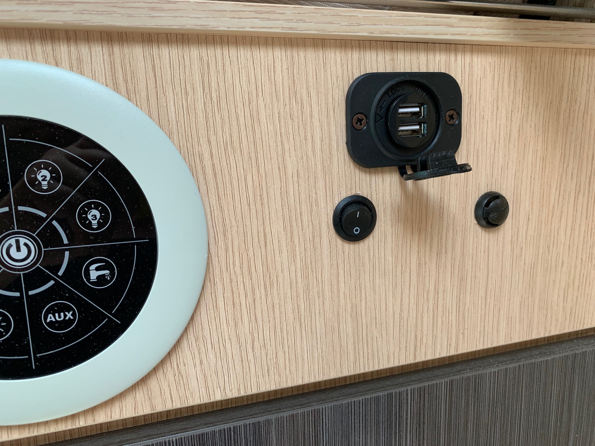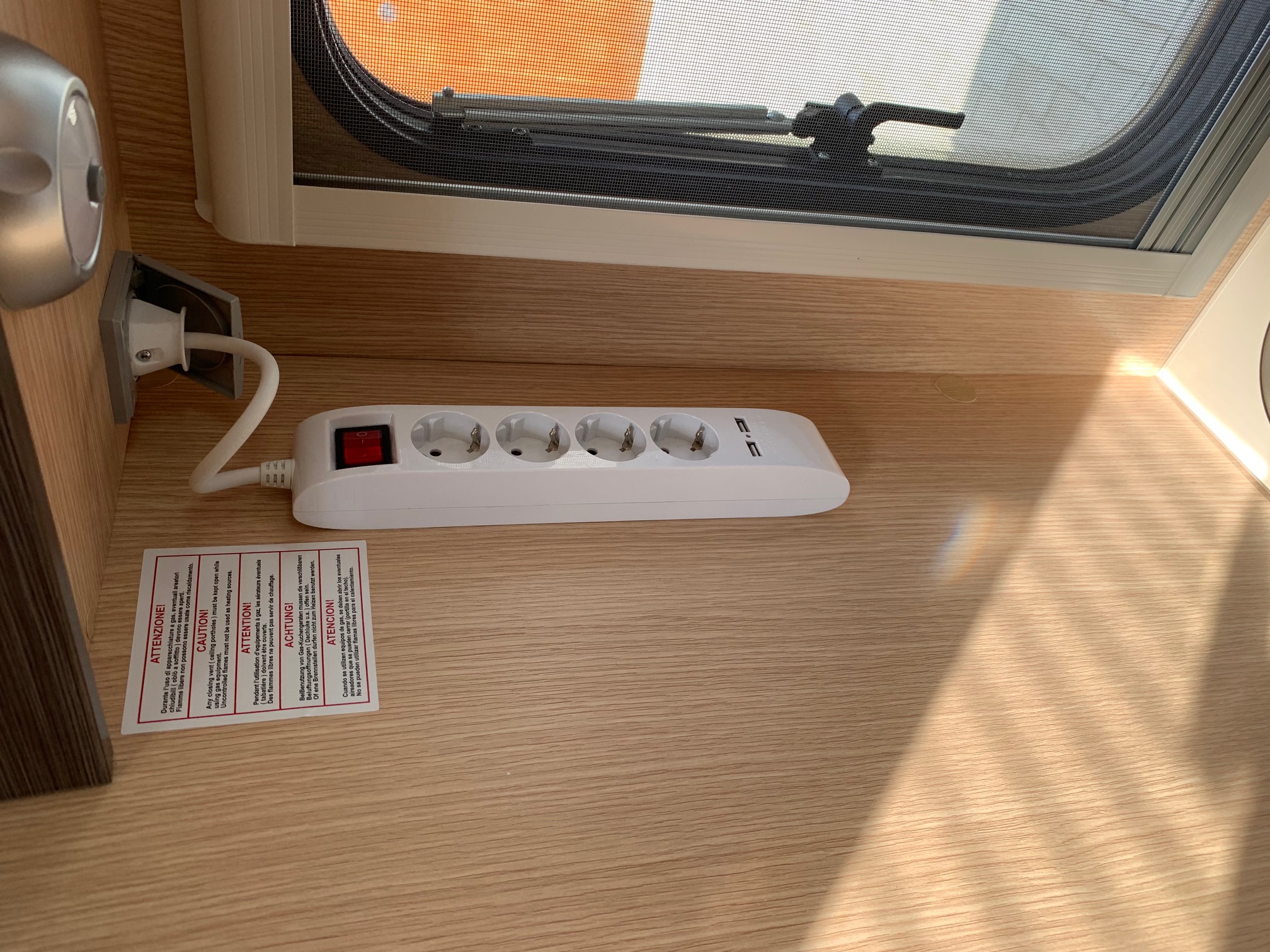 Div. USB Steckdosen und eine Steckdosenleiste mit USB in der Küche angebracht.